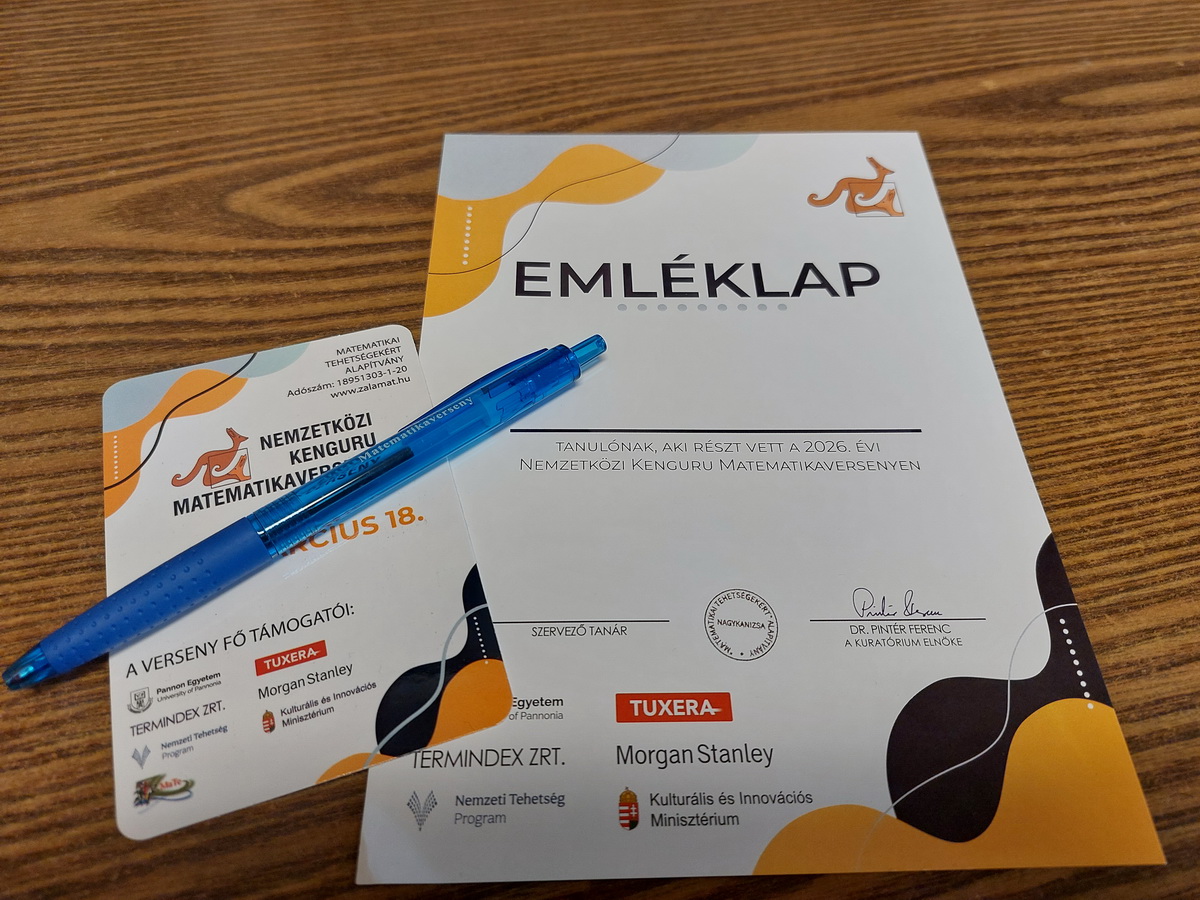 A Matematikai Tehetségekért Alapítvány a 2025/2026-os tanévben is megrendezte Magyarországon a Nemzetközi Kenguru Matematikaversenyt. Iskolánkból a 4. és 5. osztályos tanulók – Rádi Zalán, Timár Zsombor, Apró János, Juhász Lili,…