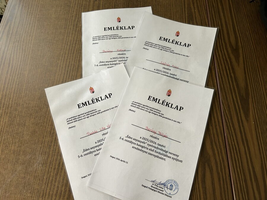 2026. április 16-án, csütörtökön a kiskunfélegyházi Constantinum Intézményben szerveztek szavalóversenyt. Iskolánkat Horváth Tibor Kevin (felkészítő nevelő: Rádi Györgyi) és Simon Regina Ilona 8. osztályos tanulók képviselték. Kevin Vass Albert, Regina…