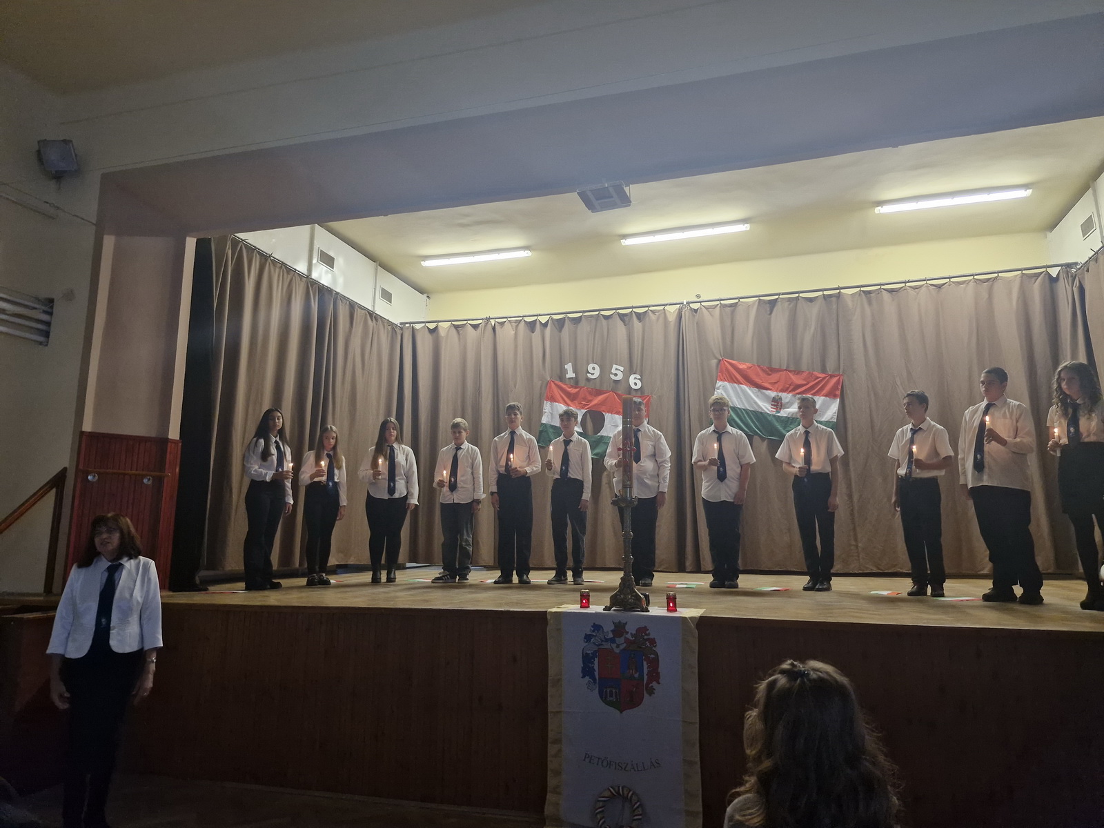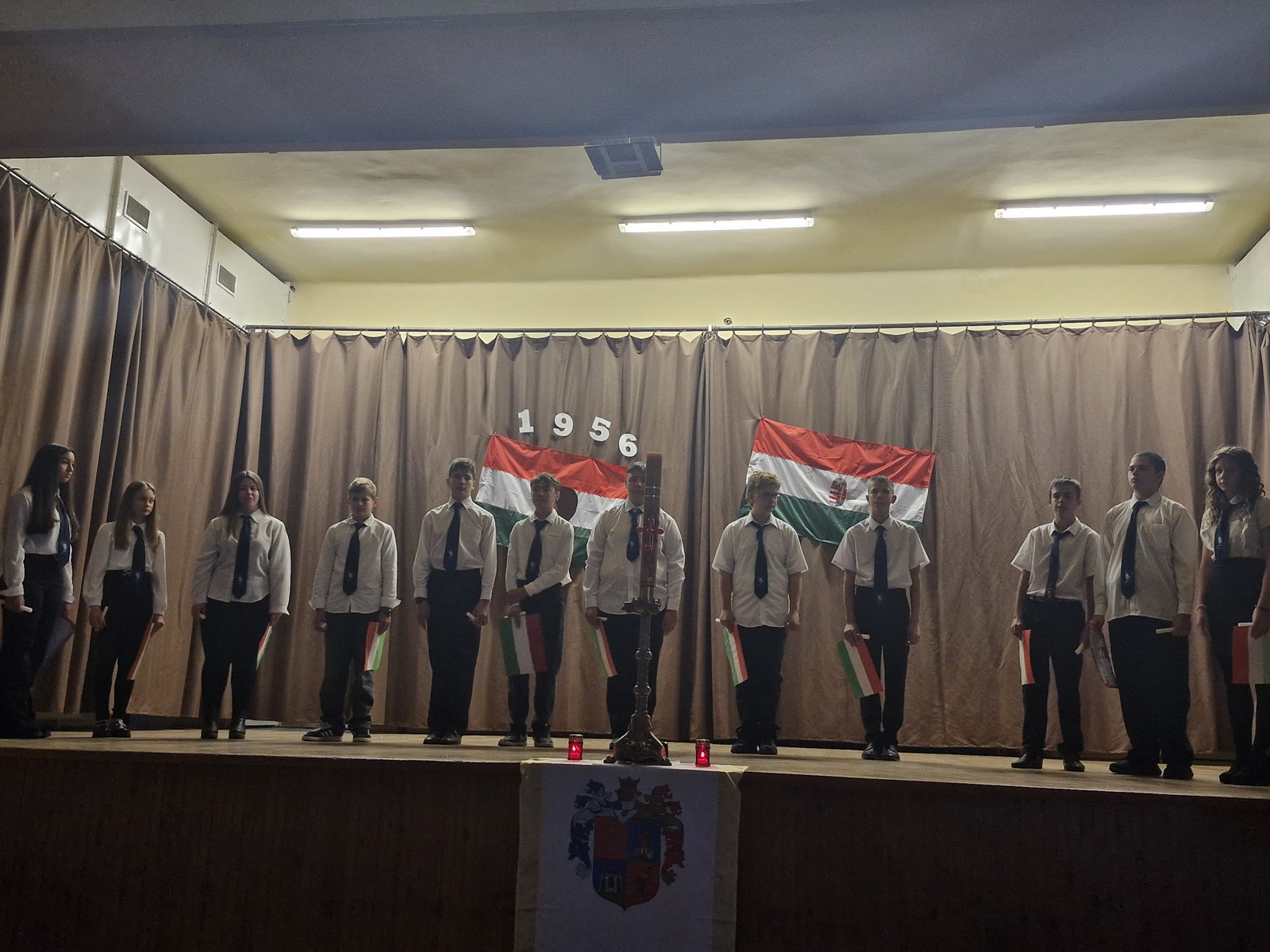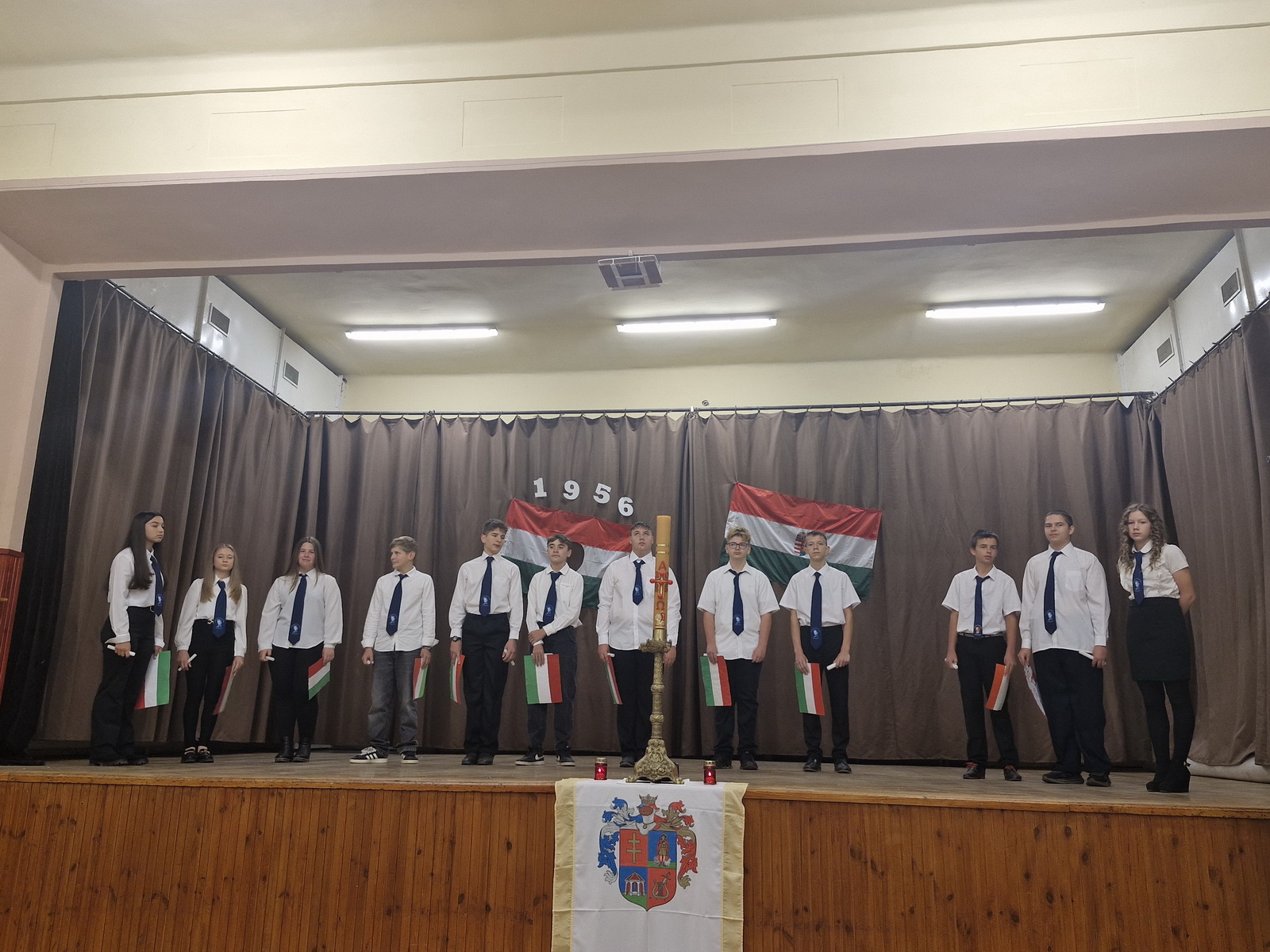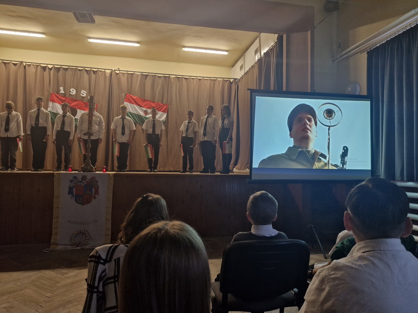 A műsort a 8. osztályos tanulók adták elő. A diákok versekkel, zenékkel, korabeli felvételekkel idézték fel a forradalom és szabadságharc pillanatait. Meghatott csendben gyújtottunk gyertyát a hős elődeink tiszteletére, akik életüket áldozták szabadságunkért, hazánk békéjéért.