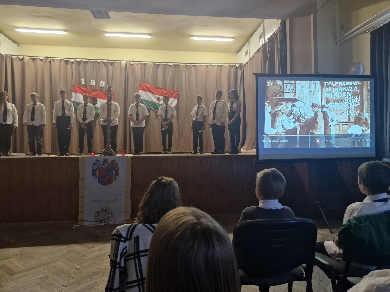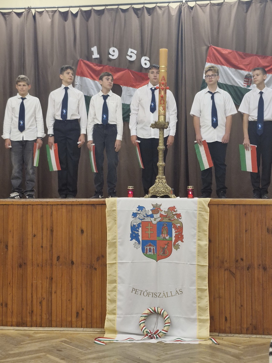 Iskolánkban október 22-én, 7.45-kor kezdtük az iskolai megemlékező műsorunkat, melyre szeretettel meghívtuk falunk vezetőit, szervezetek és az egyház képviselőit, valamint a szülőket.