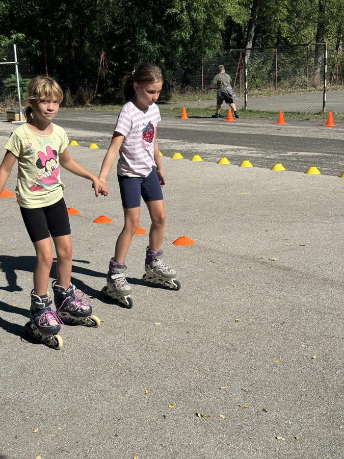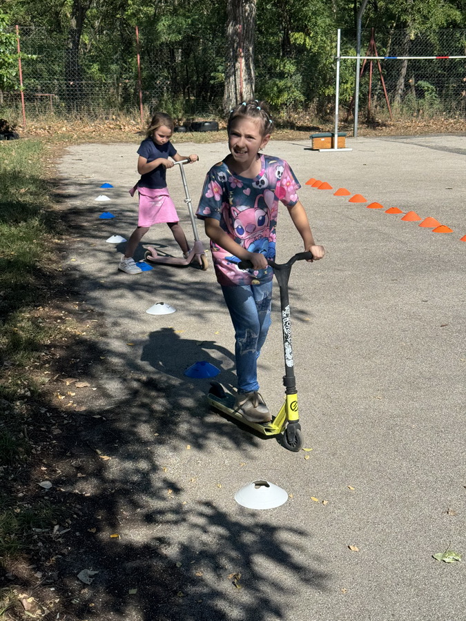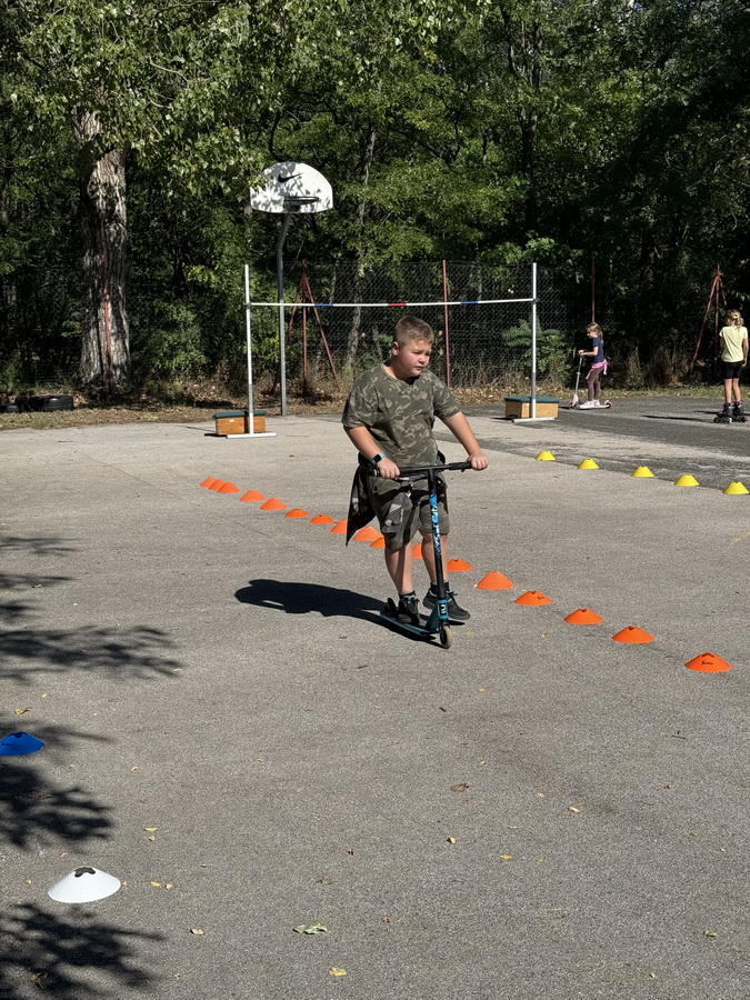 Ezen a napon sokan gyalog, kerékpárral, rollerrel vagy görkorcsolyával érkeztek. A program bebizonyította, hogy nem mindig kell autóba ülni, és kis odafigyeléssel sokat tehetünk településünk zaj- és légszennyezésének csökkentéséért. Az időjárás is nekünk kedvezett, a gyerekek lelkesen manővereztek az udvaron felállított akadálypályán.